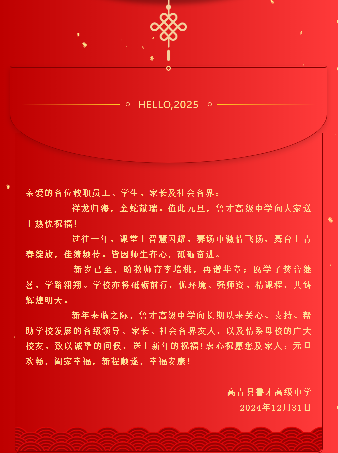 魯才高級(jí)中學(xué)2025元旦獻(xiàn)詞