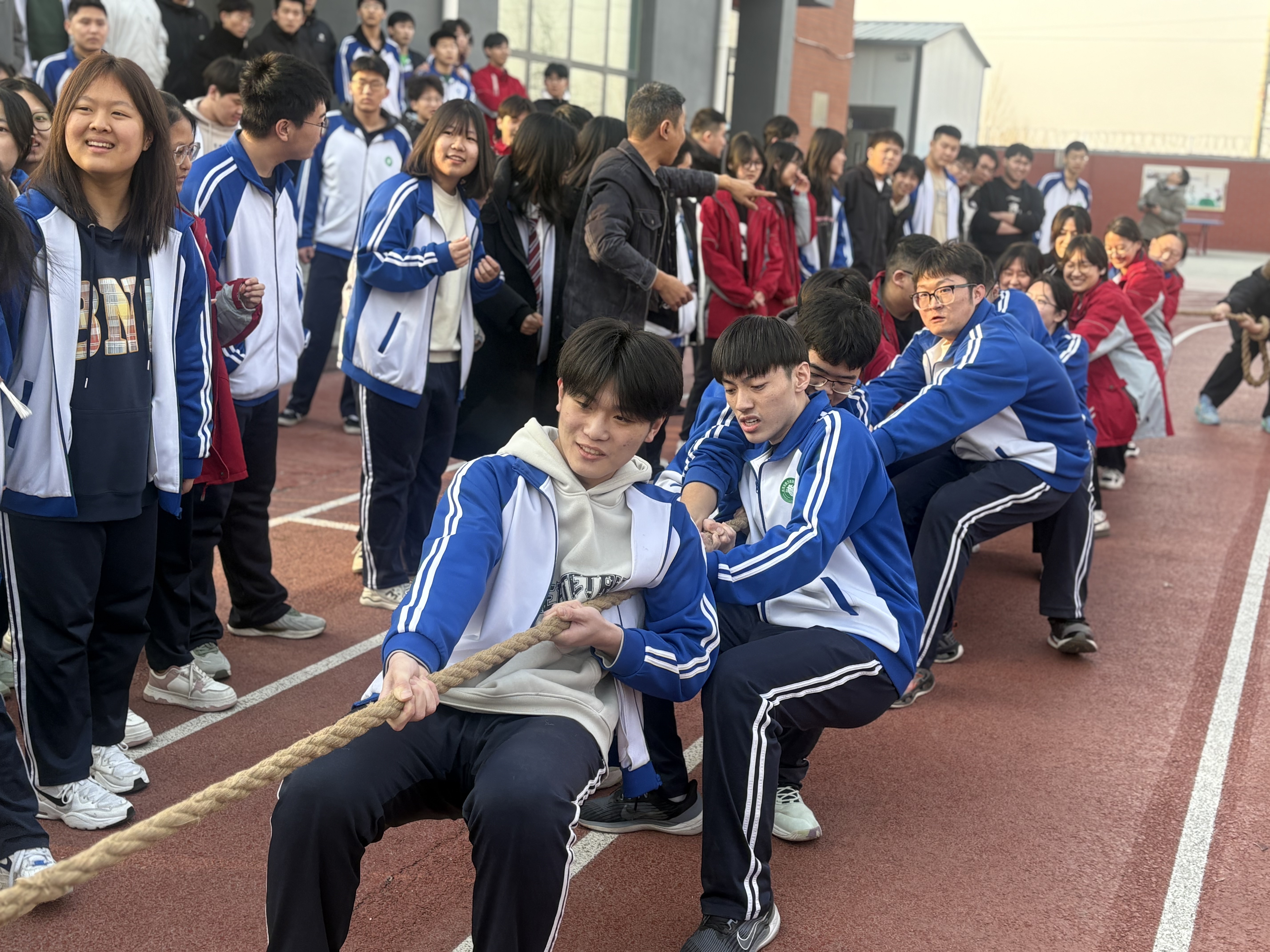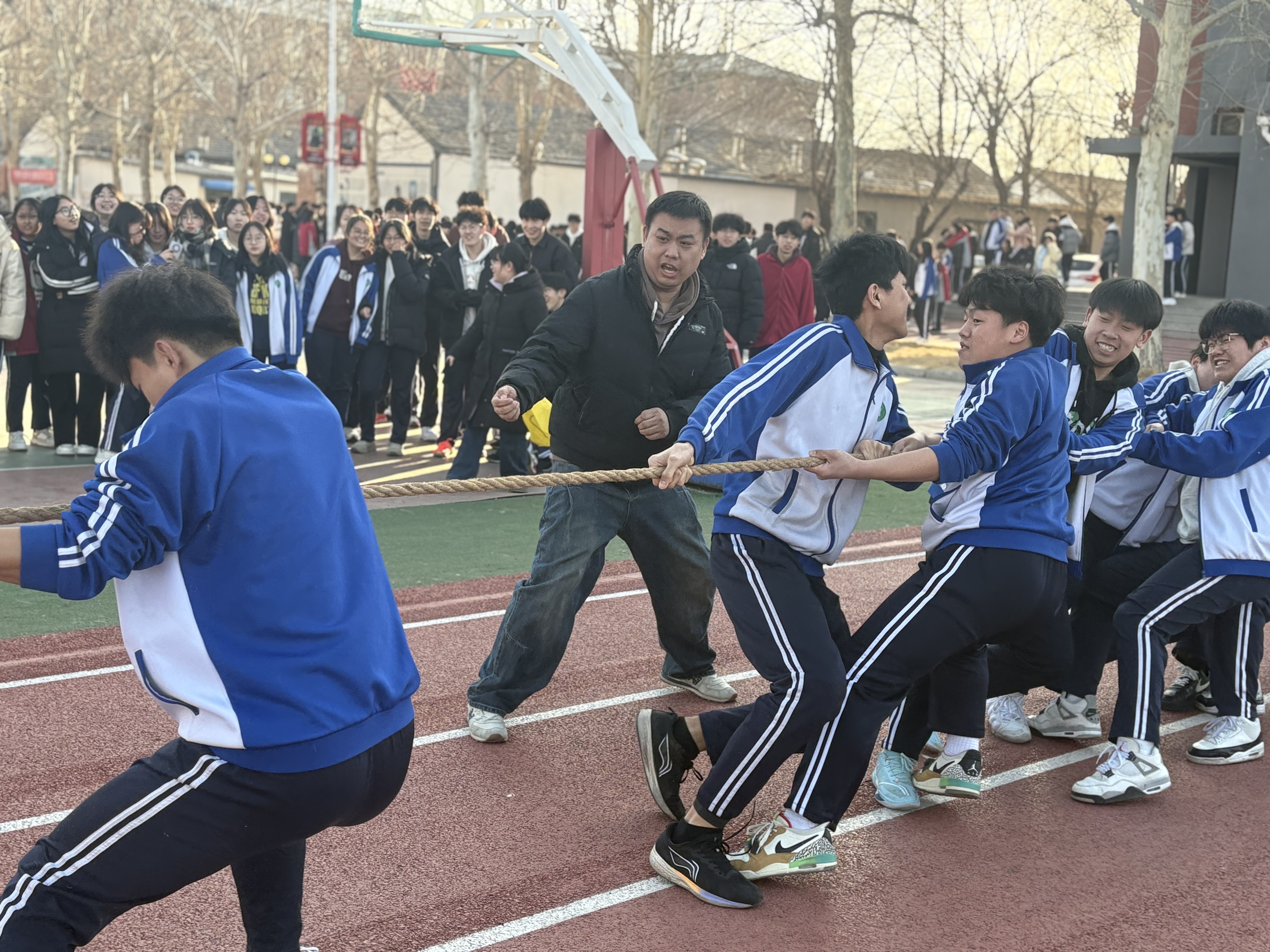 為響應(yīng)上級“齊運(yùn)動 強(qiáng)體魄 育人格”倡議,切實(shí)提高學(xué)生身體素質(zhì),培養(yǎng)學(xué)生團(tuán)隊合作精神和集體榮譽(yù)感,同時豐富校園文化生活,2月24-26日,我校開展拔河比賽活動。此次比賽吸引了眾多師生的熱情參與,現(xiàn)場氣氛熱烈非凡。